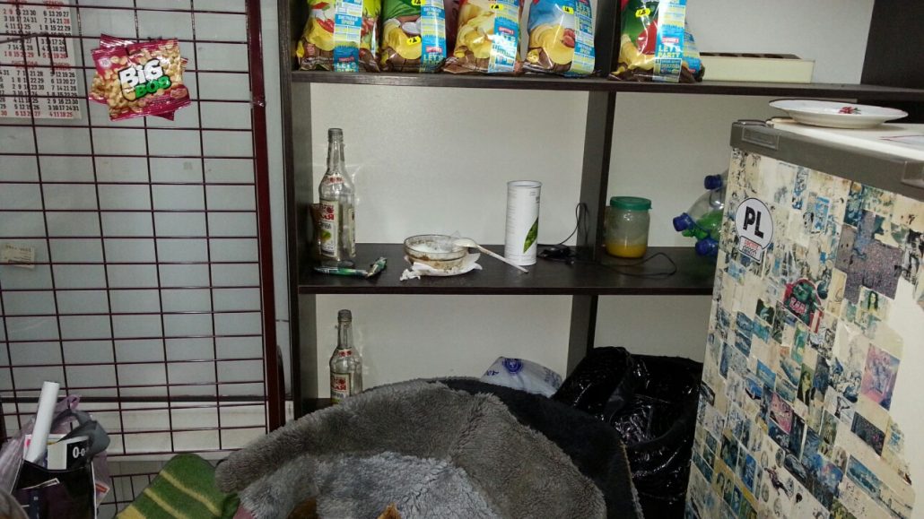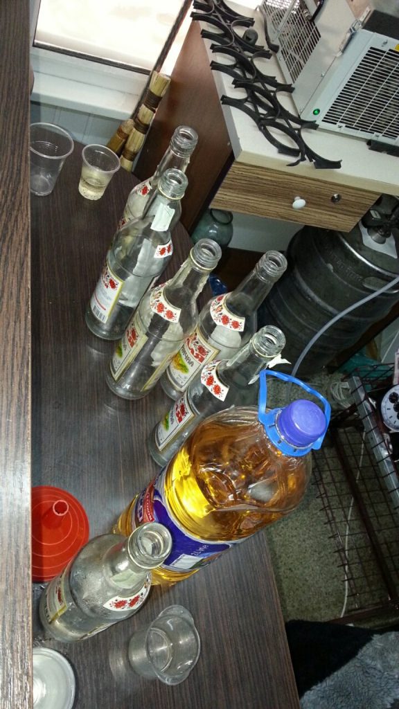 В небольшом помещении, не соответствующем санитарным нормам для предприятий общественного питания реализующих алкоголь расположилась «наливайка». Нечего говорить о том, что никаких разрешительных документов на торговлю спиртным, а тем более на розлив у реализаторов торговой точки нет и никогда не было.