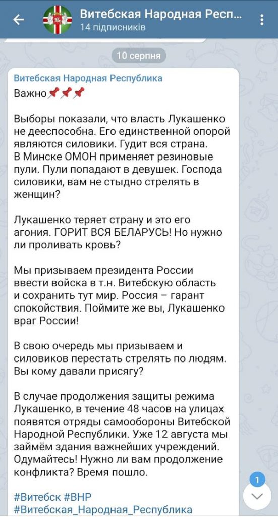 Всім патріотично налаштованим українцям, які бажають виїхати на допомогу протестуючим треба замислитись, чому громадян України затримали не в Мінську, а саме в Вітебську, де нещодавно лунали заклики про створення Вітебської народної республіки та «Путін введи війська», а також згадати недолугі намагання пов’язати затриманих в Білорусі вагнерівців з українським туроператором.