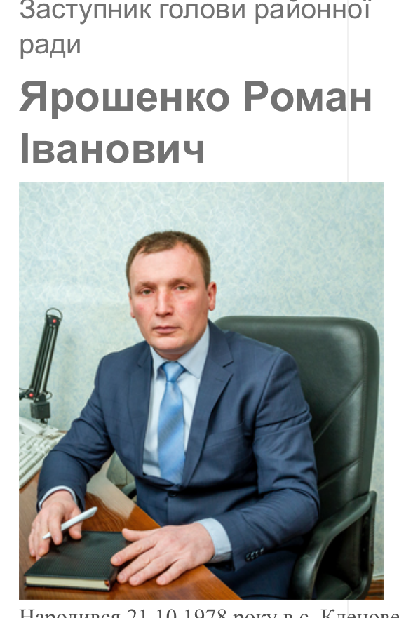 Итак, много лет Роман Иванович занимается сельским хозяйством в родном районе, начинал в 1999 в КСП «Кленовское» скромным работником склада, потом в 2007 закончил Харьковский национальный технический университет сельского хозяйства имени Василенка по специальности менеджера-экономиста, работал в фермерском хозяйстве, выращивал зерновые. Правда оформлена фирма на его бывшую жену Ярошенко Ольгу Геннадьевну, которая живет в Харькове, а в Богодухове ее никто уже давно не видел. Но это не так важно, работает себе бывший муж на фирме жены, главное, что крепкий хозяйственник. В 2015 году стал депутатом Богодуховского райсовета от партии «Батькивщина», в том же году по квоте бело-сердечной партии был избран заместителем председателя указанного райсовета. Избрание хозяйственника-сельхозтоваропроизводителя замом главы райсовета в аграрном районе можно только приветствовать. Но возникают некоторые вопросы.