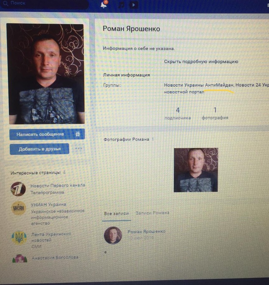 К этому замечательному «бело-сердечному» торту есть еще и одна новая вишенка. Сравните два фото. Вот зам главы Богодуховского райсовета Роман Ярошенко. А вот активный участник группы «АнтиМайдан» в «Фейсбуке», тоже наш герой.