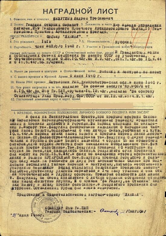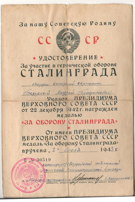 Мій батько, Безуглий Андрій Трохимович, воював добре. Мав бойові нагороди не за дії в тилу чи при охороні радянських трудових таборів, а за дії на полі бою. Реального бою. Зараз, коли відкрились архіви і відкрилась можливість прочитати в документах за що був нагороджений мій батько, сердце розривається і від того, що його вже давно немає, і від того, що його пам’ять ворог намагається використати для знищення нашої з батьком батьківщини – рідної України. Російська Федерація прийшла в Україну не просто і не тільки з метою захопити землю, а й з конкретною метою — знищення України, як незалежної і самостійної держави. Російська Федерація прийшла в Україну не тільки з метою знищення незалежності, а й з метою знищення українців як природнього феномену з особливою культурою, традиціями, мовою, історією.