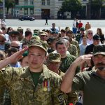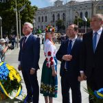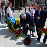 К монументу возложили цветы первые лица Харьковской области и города – Игорь Райнин, Сергей Чернов, Игорь Терехов. Вслед за ними в порядке живой очереди подошли с цветами остальные собравшиеся чиновники и представители общественных организаций.