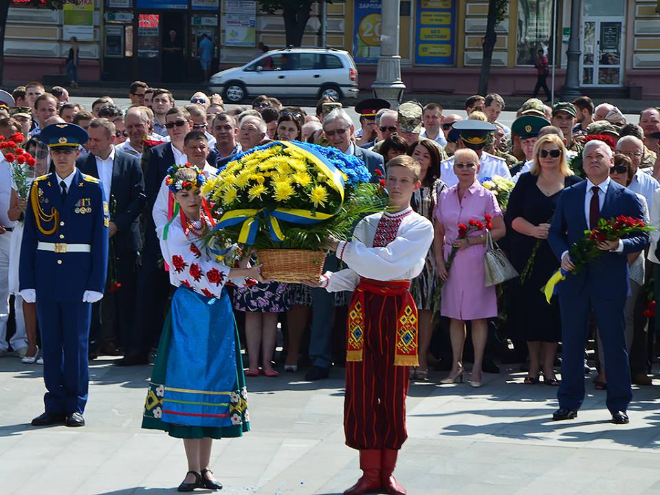 К монументу возложили цветы первые лица Харьковской области и города – Игорь Райнин, Сергей Чернов, Игорь Терехов. Вслед за ними в порядке живой очереди подошли с цветами остальные собравшиеся чиновники и представители общественных организаций.