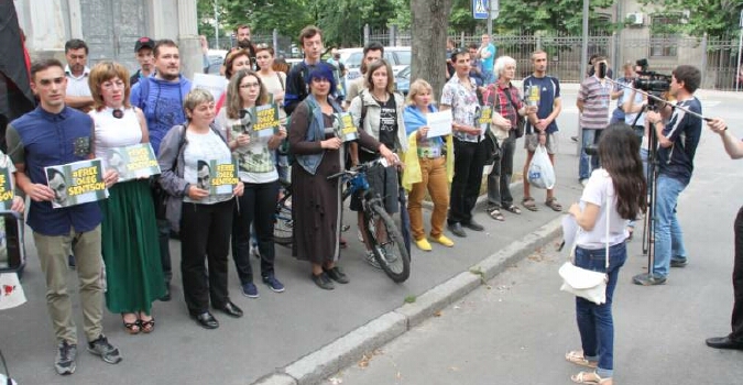 Сегодня у Олега Сенцова день рождения и неравнодушные харьковчане собрались перед генконсульством России, чтобы в очередной раз потребовать освобождения политзаключенного.