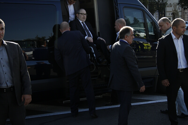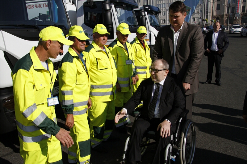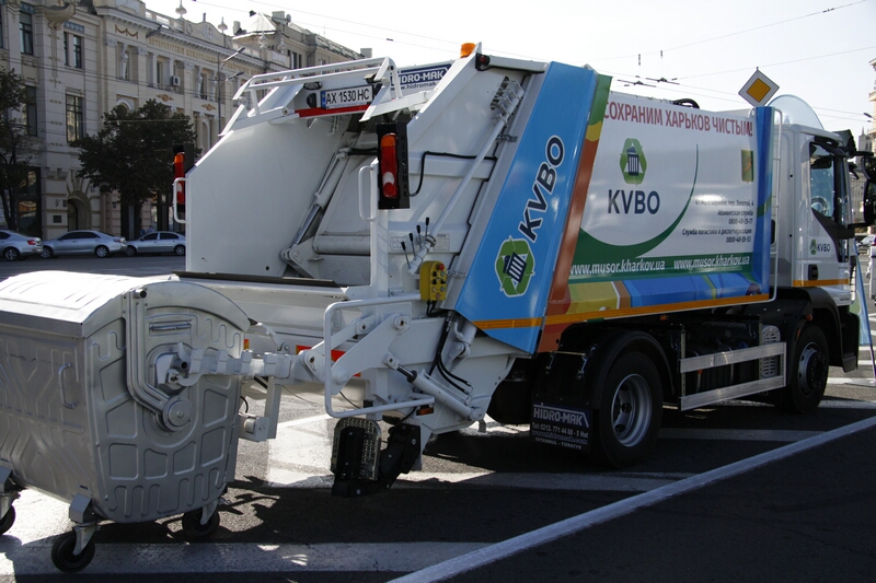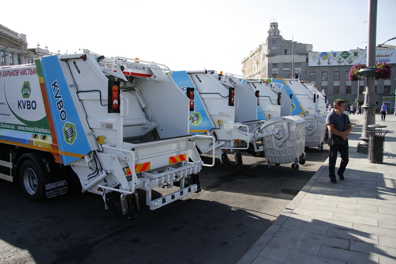 В девять утра на площади Конституции при небольшом стечении публики и большом количестве чиновников горсовета, мэр Харькова Г. Кернес передал КП по вывозу бытовых отходов новую технику.