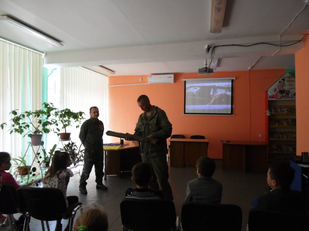 «Война – это зло, но защищать свою страну надо» — таков стал основной тезис встречи. Дети увидели слайды из зоны АТО — разбитую боевую технику, жителей захваченных районов и последствия боевых действий.