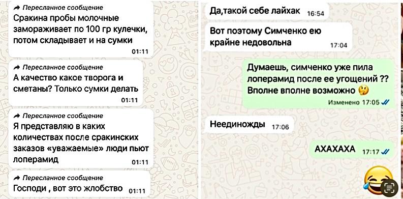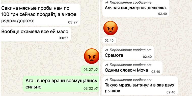 За командою Ірини Сімченко на Центральному та Кінному ринках нічого не досліджується, йде масові фальсифікації результатів досліджень, а усі відібрані харчові проби Олена Сакіна на прізвисько Моча продає та ділиться виручкою з Іриною Сімченко.