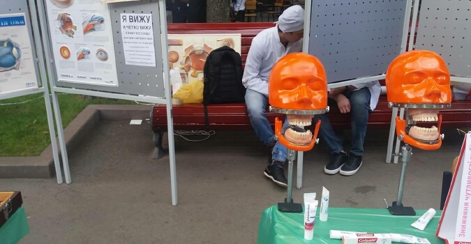 На главной аллее парка организаторы расположили ряд палаток, в каждой из которых были врачи и студенты. В одной палатке можно было померить давление, в другой проверить зрение, в третьей сделать диагностику костей, в четвертой палатке рассказывали о правильном питании и предоставляли соответствующую литературу. В остальных палатках врачи учили детей и взрослых, как нужно обрабатывать и бинтовать раны, делать уколы и зашивать раны, показывали различные медицинские инструменты.
