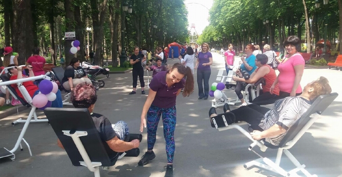 И это еще не все, харьковчанам и гостям города на манекене показывали, как спасти человека при остановке сердца, и не просто показывали, а давали каждому желающему попробовать себя; давали уроки вальса, предоставили возможность позаниматься на тренажерах с инструкторами.