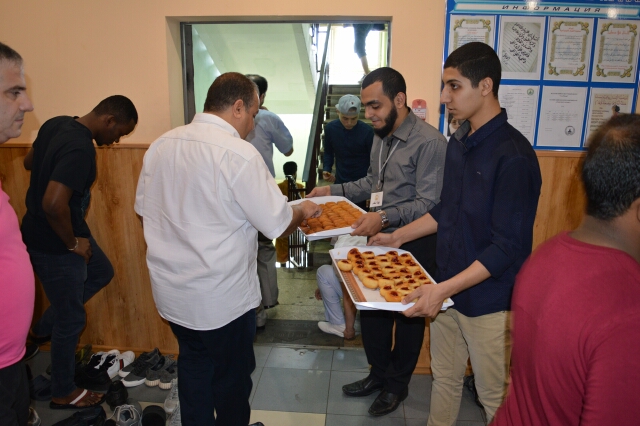 Мусульман Харькова угощали сладкими арабскими пирожными, засахаренными фруктами, шаурмой и салатами. На праздник пришло очень много детей, для них приготовили подарки, глаза мальчишек светились радостью.