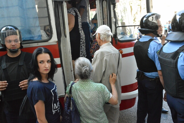 Радикально настроенные патриоты выслали переговорщиков, для разъяснения своей позиции и объяснения, почему главарь харьковских коммунистов оказалась в тюрьме. Во время переговоров накал страстей достиг такой точки кипения, после которой взаимные обвинения в неправоте могли перерасти в «боевые столкновения». Примерно в это время в сторону «красных», ратовавших за освобождение Аллы Александровской и равенство трудящихся, полетели из рядов патриотов куриные яйца.  Копы, в смысле бывшие милиционеры, быстро сориентировались и подогнали автобус, куда и погрузили коммунистов. Пострадавших, а равно и разрушений нет. Как заявили в Отделе Коммуникаций Национальной полиции, с представителями противоборствующих сторон проведены разъяснительные беседы.