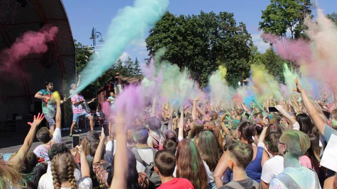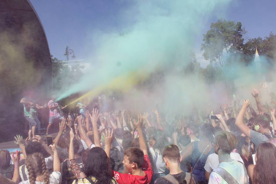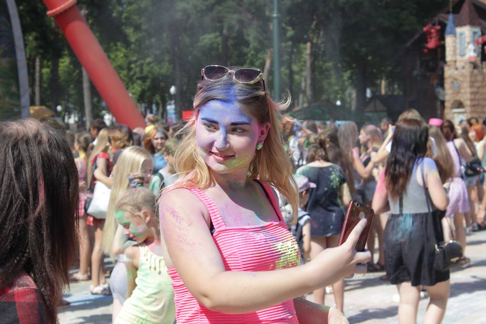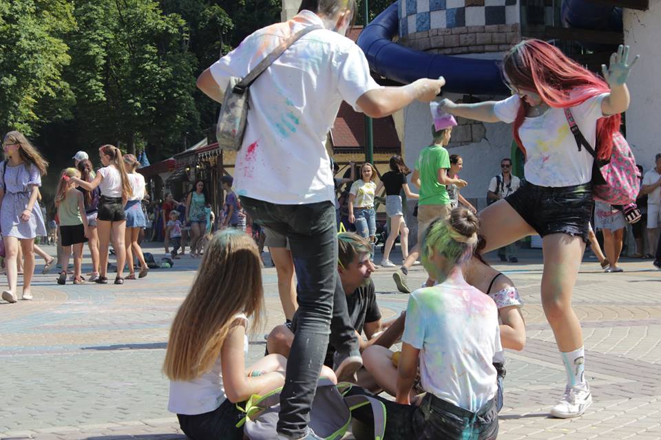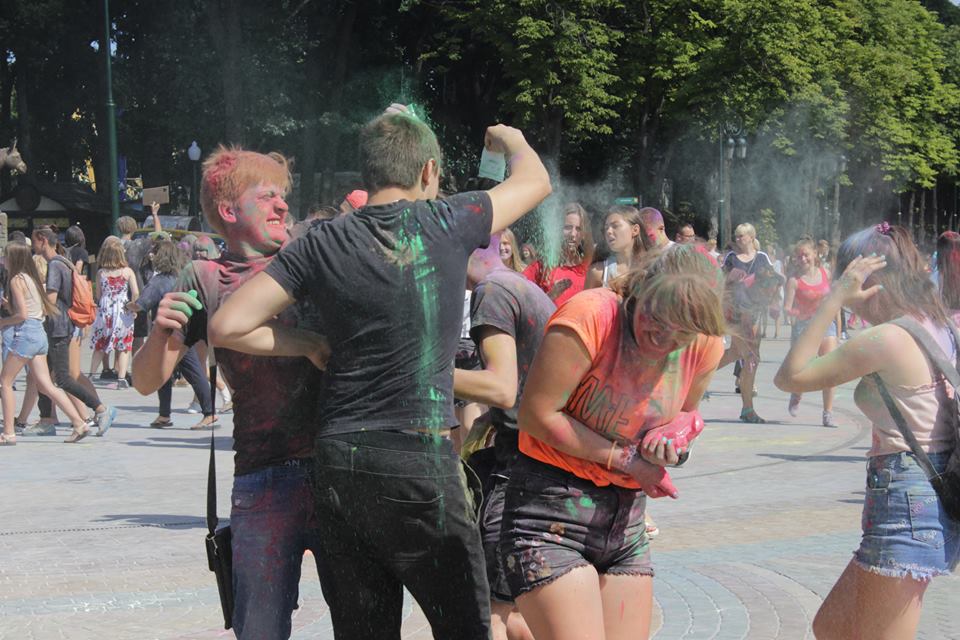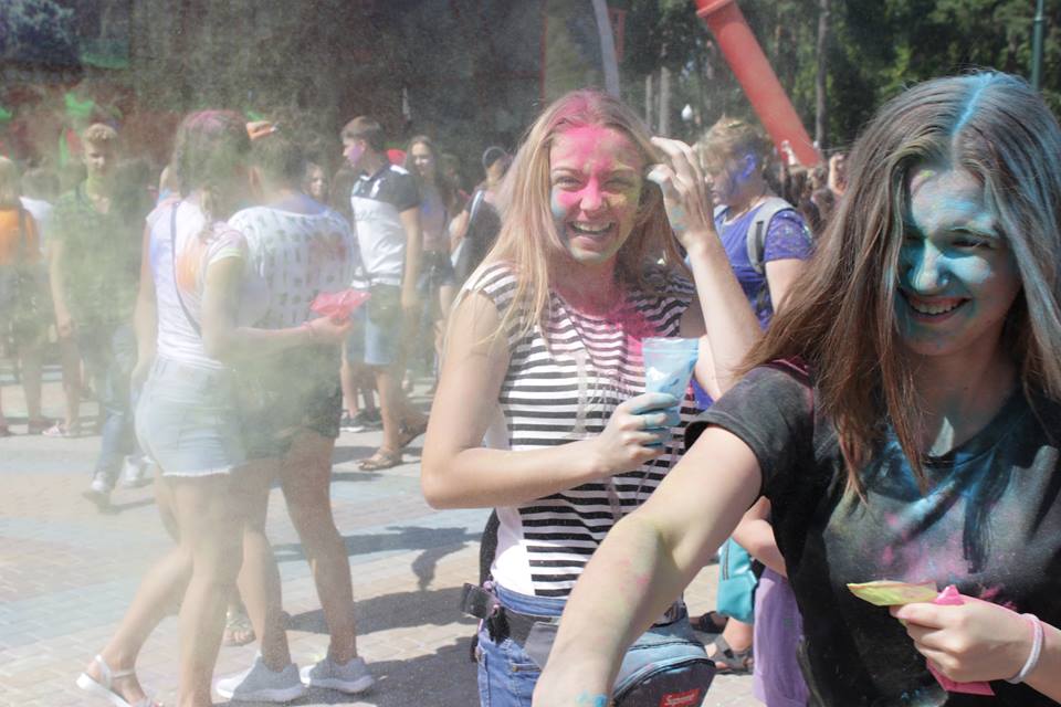 Праздник «Холи» пришел к нам из Индии. Согласно его правилам, все участники должны осыпать друг друга на счастье сухими красками. К фестивалю приобщились сотни харьковчан вне зависимости от возраста. В 15:00 в парке Горького перед главной сценой, недалеко от колеса обозрения, участники запустили салют из цветных красок.