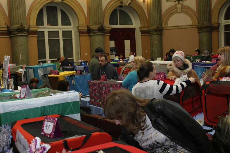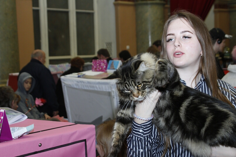 В автотранспортном техникуме актовый зал используется для различных выставок не впервые. Вот только для выставки кошек он оказался маловат, узкие проходы, небольшая сцена для работы судей, не давали возможности посетителям рассмотреть кошек и пообщаться с их владельцами.