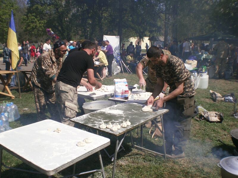 Та грузинські воїни відзначились на фестивалі не лише кулінарними звершеннями. Коли ведуча почала оголошувати їм подяку за участь у заході та бойові звитяги заграла «лезгинка». Декілька бійців «легіону» наче хижі птахи кинулись на майданчик під сценою…Один з них, на ім’я Леван одразу почав танцювати. У його рухах було щось насправді орлине. До дикого та прекрасного танцю швидко приєдналися декілька українських дівчат різного віку та комплекції…