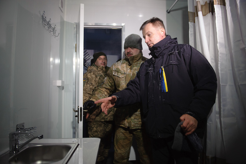 Попри жахливу погоду, солдати 30-ї ОМБр згуртувалися навколо Наливайченка та його команди волонтерів, щоб висловити подяку. Зараз в українських підрозділів немає гарячої води для душу. В умовах континентальної зими у самому розпалі, душовий модуль (оснащений бойлером) безумовно покращить житлові умови солдатів. Такі ініціативи волонтерів також підвищують бойовий дух підрозділів. “Ми почуваємося зобов’язаними перед усіма, хто нас підтримує”, — сказав прес-офіцер 30-ї ОМБр.