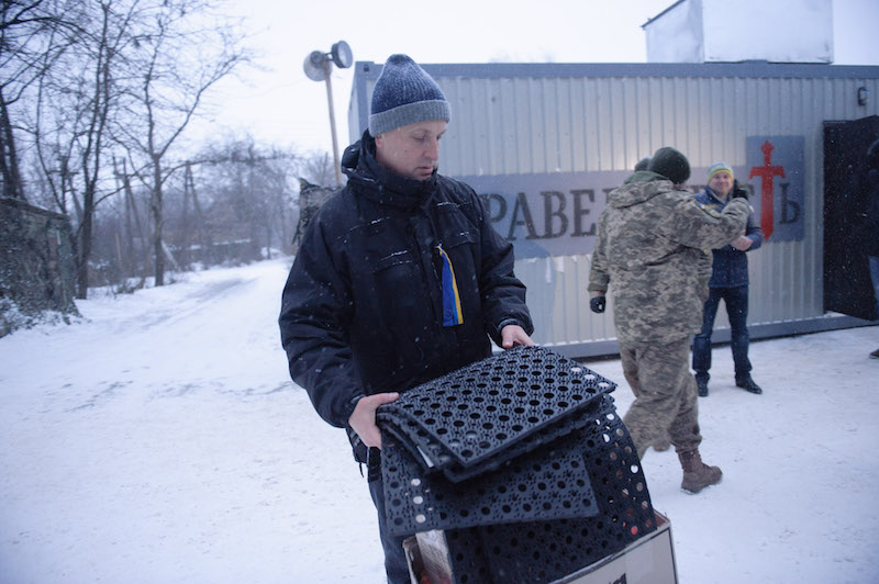 Більшу частину обладнання, якого бракує, все ще постачають цивільні волонтери. У вівторок попри хуртовину Валентин Наливайченко, колишній Голова Служби безпеки України, СБУ, та провідний антикорупційний реформатор разом із членами Громадсько-політичного руху «Справедливість», який він очолює, привіз до 30-ї ОМБр мобільний душовий модуль, переобладнаний із вантажного контейнера.