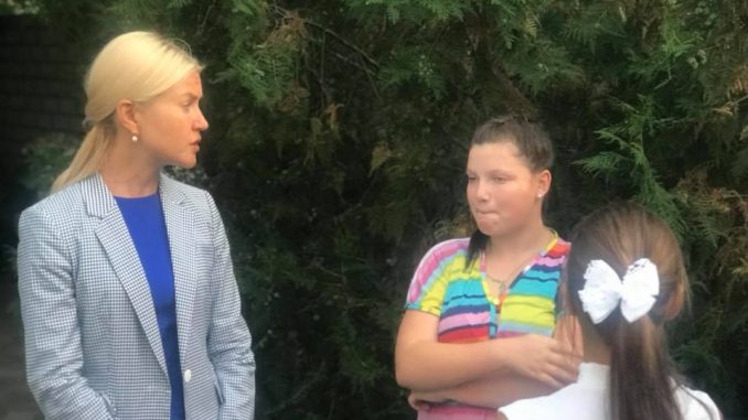 Юлия Светличная стоит рядом и заговаривает с девочкой: