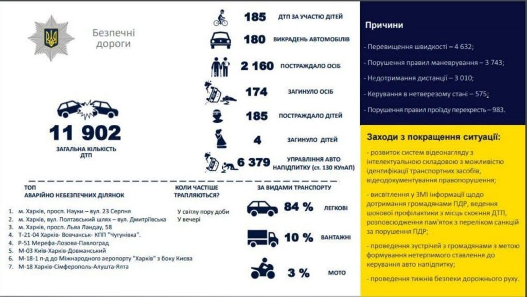 — За 2021 рік на території Харківської області сталося 2812 ДТП – поліція проаналізувала стан аварійності на автошляхах, — повідомляють на сайті Харківської Нацполіції.
