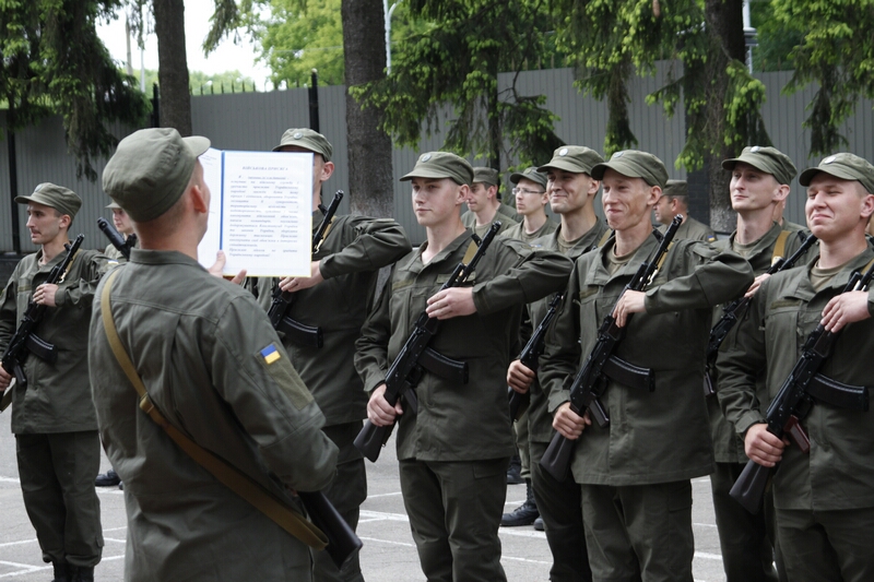Родители съехавшиеся со всей Украины со слезами на глазах смотрели на своих сыновей, возмужавших, сильных и таких родных. Сами мальчишки с гордостью говорят о своей службе, которая только сегодня и началась. Теперь они полноправные бойцы Национальной гвардии.