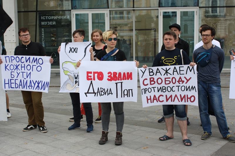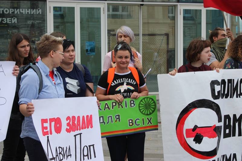 В перший день липня на площі Конституції в центрі Харкова пройшли дві протестні акції, яких розмежовував щільний ланцюг правоохоронців. Основний контингент присутніх, котрі прийшли на пікет проти ксенофобії та фашизму, складали переважно члени лівих угрупувань. Вони тримали плакати з написами «Солидарность вместо расизма и ксенофобии», «Его звали Давид Пап», «Уважаем свободу противостоим насилию» тощо.