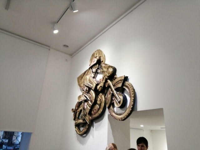 Перед галереей стоит золотой телец, отсылая то ли к фигуре на Уолл-стрит, то ли к классическому литературному произведению.