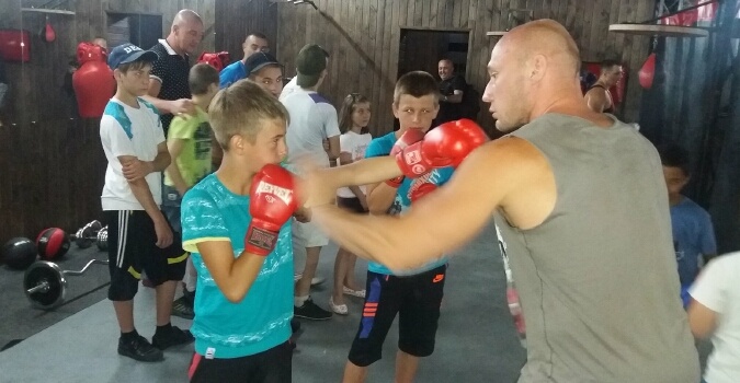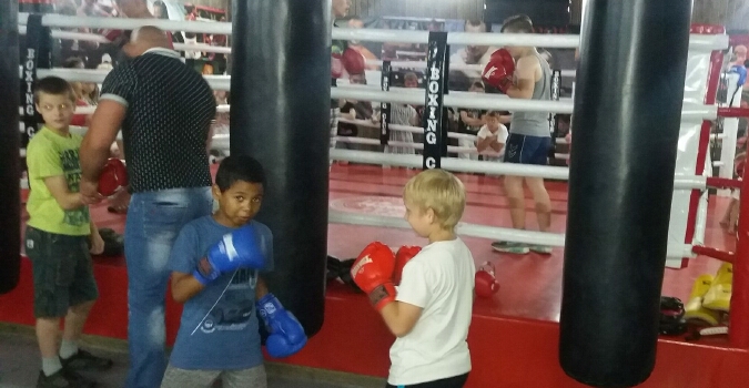 Дети пробовали себя в спарринге, выходили на боксерский ринг, под наблюдением тренера, занимались с гантелями и на беговой дорожке, подтягивались на специальном тренажере, прыгали на скакалке и с удовольствием били боксерские груши разных размеров.