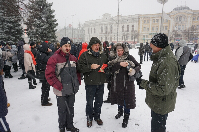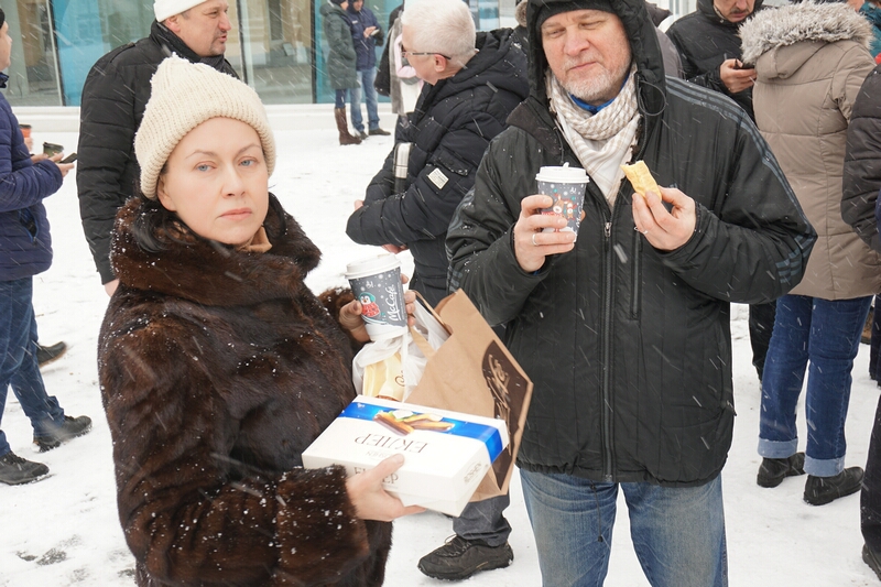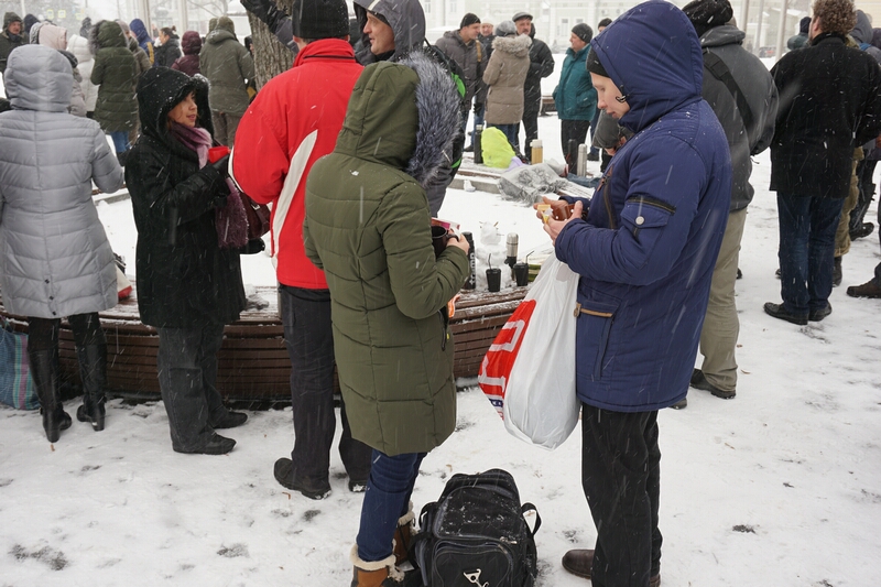 Примерно к двум часам дня количество собравшихся стало уменьшаться. То ли снег повлиял, то ли кофе в термосах закончился, но большинство людей тихо и мирно разошлись по своим предпраздничным делам.