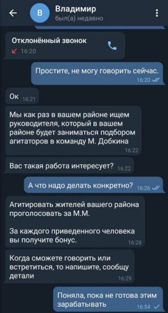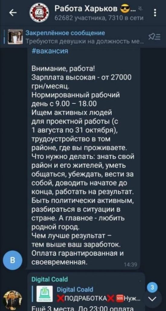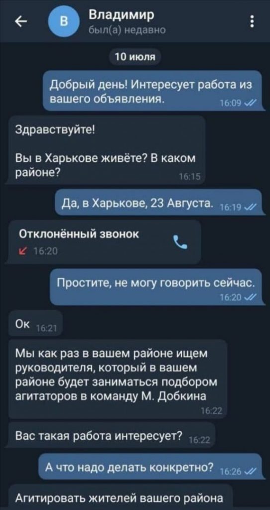 «Мы видим, что на харьковских выборах все активнее кандидатами используются фейсбук, ютюб-каналы и телеграм-группы. Поэтому, и акцент агитации смешается в социальные сети, – сообщил Михаил Камчатный. – Несколько дней назад в одном из телеграм-каналов появилась информация, что набираются люди для работы агитаторами. И предлагают агитировать за Добкина за 27 тыс. грн. в месяц. Здесь вполне возможен вариант, что выстраивается сетка для подкупа избирателей. Это индикатор. Поэтому нужно обратить на это внимание. Не исключено, что кандидат Добкин будет использовать такую технологию в своей кампании».