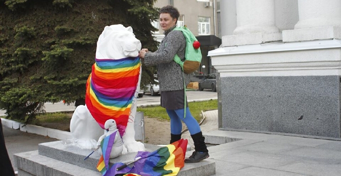 Спочатку біля входу в РАГС зібралося декілька десятків гомосексуалістів, лесбіянок та гетеросексуалів, що їм співчувають. «Молодят» видно не було. Учасники акції пов’язали на шиї гіпсовим левам, що «охороняють» вхід до будівлі, райдужні прапори ЛГБТ. Потім навіть спробували сказати якийсь спіч, але не встигли. В них полетіли яйця із зеленкою та матюки. Так їх вітали противники ЛГБТ спільноти – учасники правого руху. Всього зупинити «весілля» зібралося біля 40 «правих» активістів.
