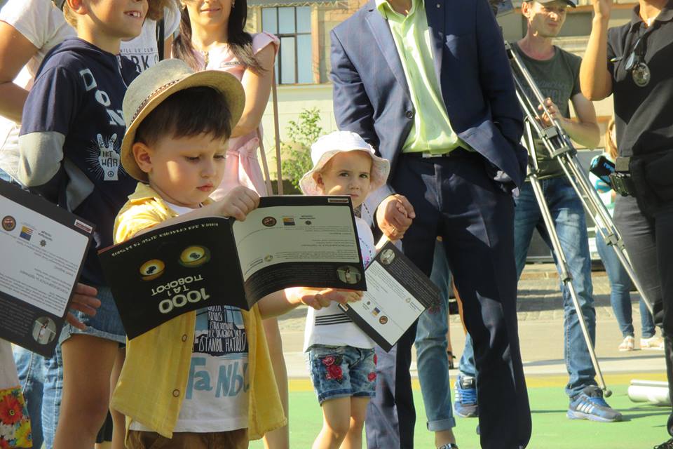 Все дети получили книги под названием “1000 и 1 поворот”, в которых яркие иллюстрации растолковывают правила дорожного движения. Организаторы сымитировали на площади пешеходный переход, где полицейские объяснили самым маленьким значение основных дорожных знаков.