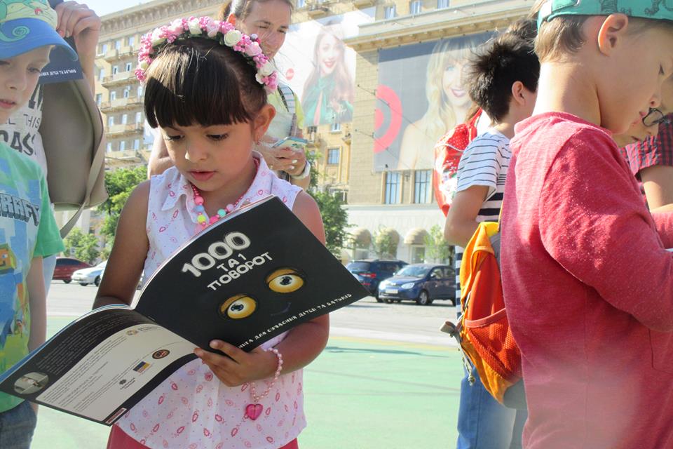 Все дети получили книги под названием “1000 и 1 поворот”, в которых яркие иллюстрации растолковывают правила дорожного движения. Организаторы сымитировали на площади пешеходный переход, где полицейские объяснили самым маленьким значение основных дорожных знаков.