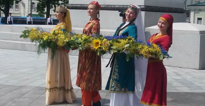 Открывали мероприятие девушки и парни в пестрых, национальных костюмах, которые пели Гимн Украины и танцевали для горожан и гостей Харькова. Затем к памятнику торжественно вознесли большие красивые плетеные венки из живых цветов.