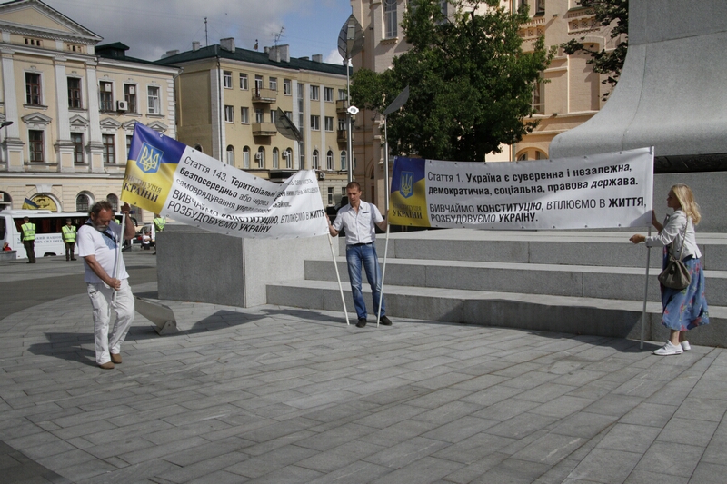 После того как основная масса собравшихся людей «выполнила свой долг», возле памятника прошел небольшой митинг в поддержку Конституции. Основной целью своей демонстрации организаторы назвали – исполнение основного Закона и его изучение. В целом же, праздник начинает напоминать «священнодействие» времен советской власти – цветы, чиновники, танцы. Лишь немногие в этот день отдают должное самому событию, а не внешнему антуражу.