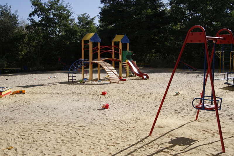 Детские площадки вдруг оказались приведены в приличное состояние, все покрашено, отремонтировано. А за небольшой оградой, защищающей малышей от внутриквартальной дороги чистый песок и игрушки, дожидающиеся своих владельцев со вчерашней прогулки.