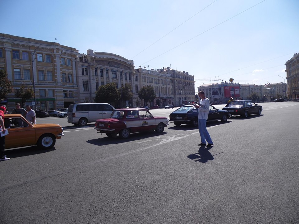 В этот же день на площади Свободы состоялось открытие ралли турнира DRC, поэтому на одной площади встретились старые и новые автомобили.