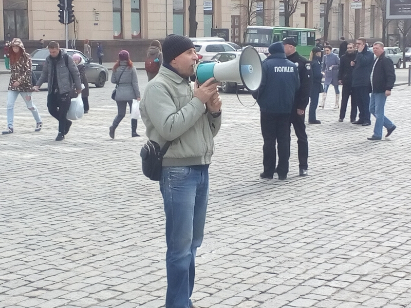 Среди участников акции протеста представители ОО «Чернобыльский спас» и союза предпринимателей. Два десятка человек держат плакаты с надписями: «Долой бездарное правительство!», «Уничтожая малый бизнес – уничтожаете страну», «Долой бездарное правительство».