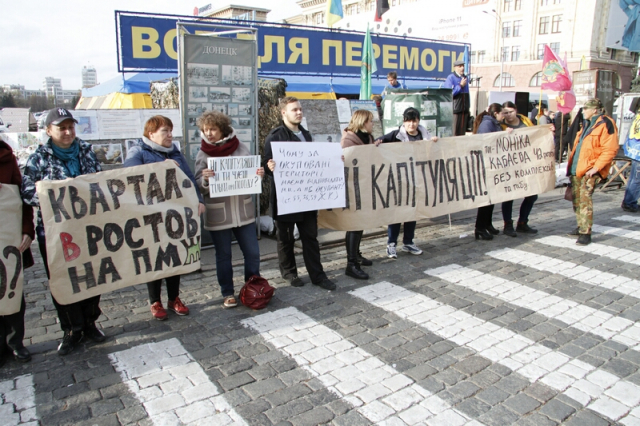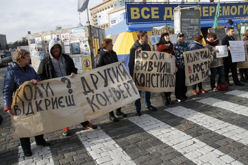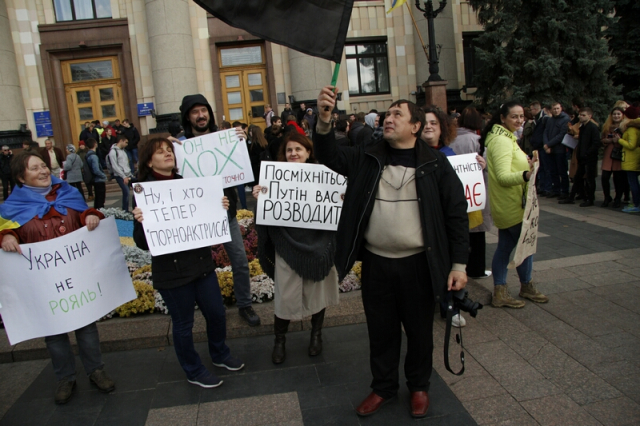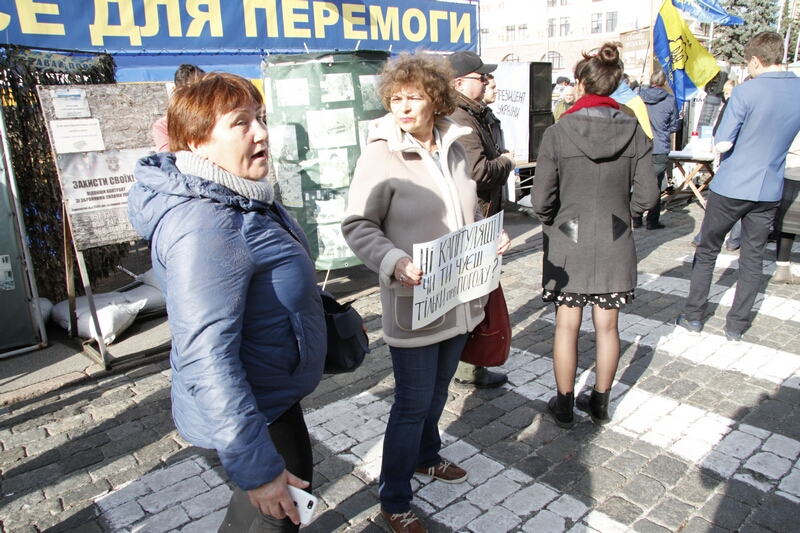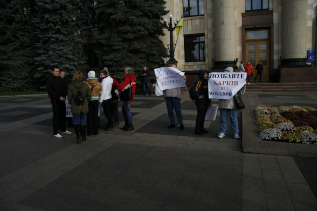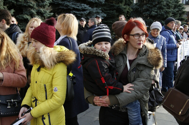 А перед зданием областной администрации собрались разные, очень разные люди. Большая часть из собравшихся харьковчан пришла к ХОГА на «прием к царю-батюшке». Больше им идти некуда, остальные чиновники, как правило, их «футболят» не замечают проблемы простых харьковчан. Основная часть вопросов у этих людей касалась в первую очередь бездействия городских властей. Сюда пришли с большим пикетом жители общежития по улице Селянской 25, пришли матери с детьми из поселка переселенцев, которых могут выбросить на улицу в любую минуту, пришла женщина у которой нет в квартире электроэнергии… Конечно же, это все уровень вопросов, решаемых только президентом, все они относятся к внешней политике и руководству армией. Но! Именно эти люди выбрали своего Слугу и пришли его ПРОСИТЬ им помочь.