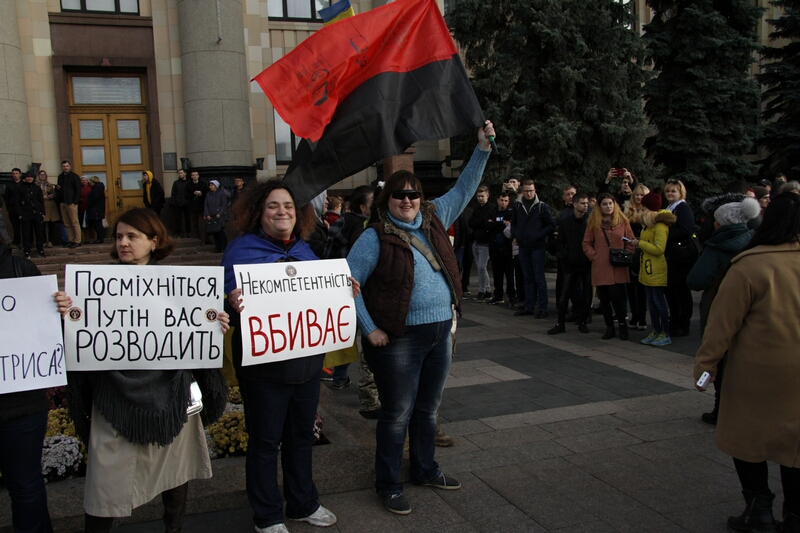 Третьими кто пришел ждать Президента у стен обладминистрации оказались предприниматели. Они все еще пытаются убедить всеми доступными им методами своего Слугу в том, что фискализация малого бизнеса в том виде, в котором собирается ее делать правящая партия, приведет к гибели большей части малого бизнеса, а ведь именно они основные плательщики налогов в бюджет города, области, страны.