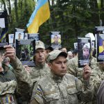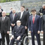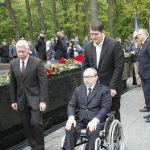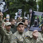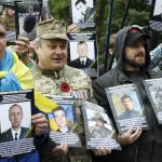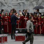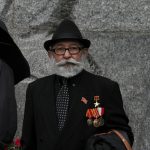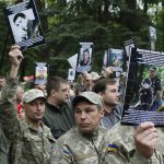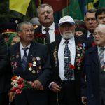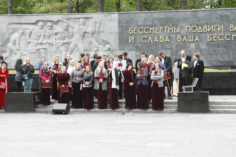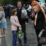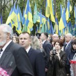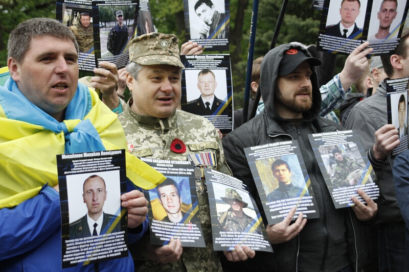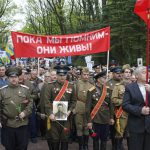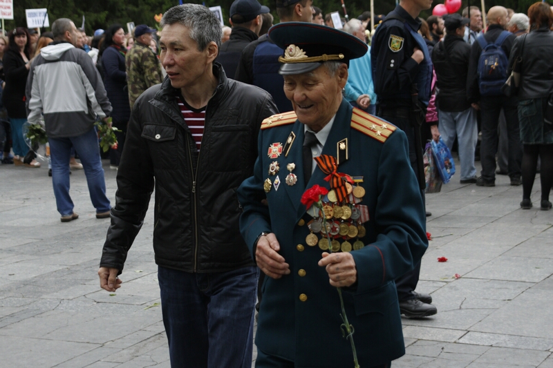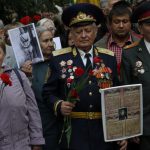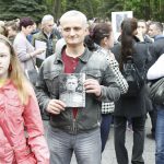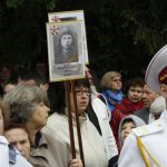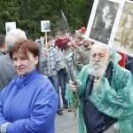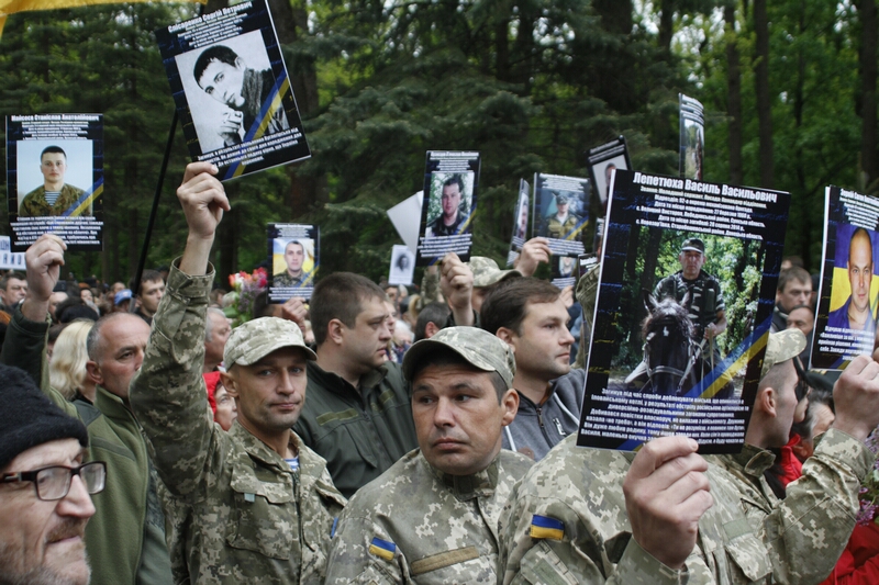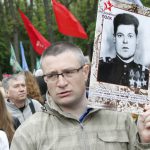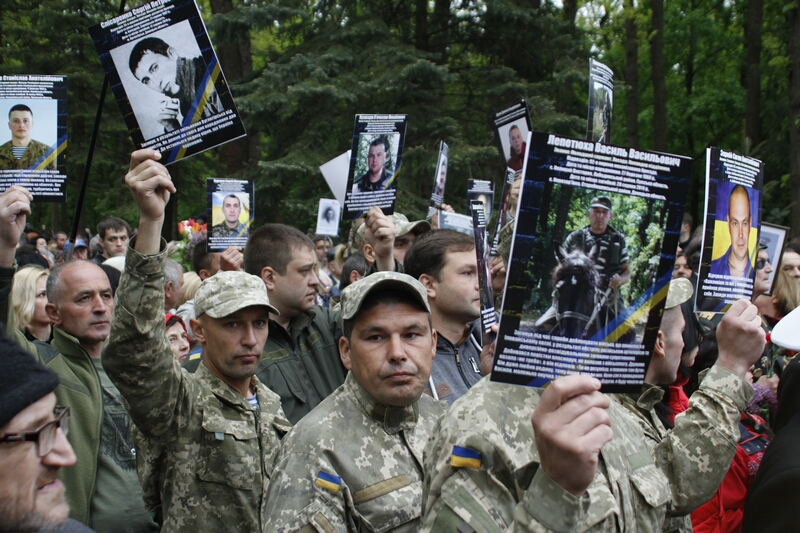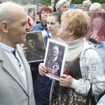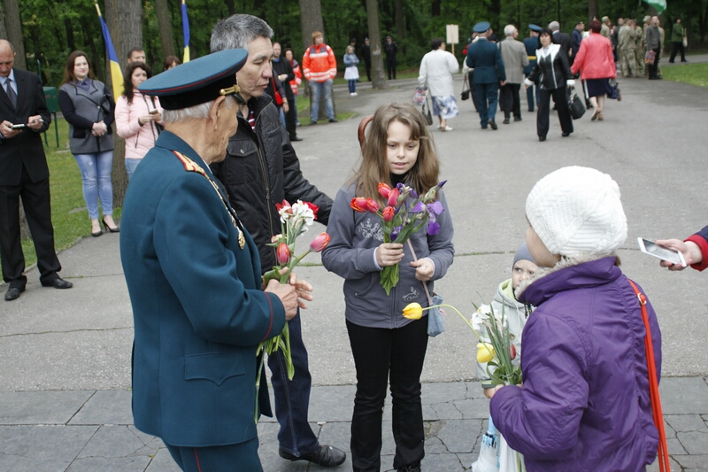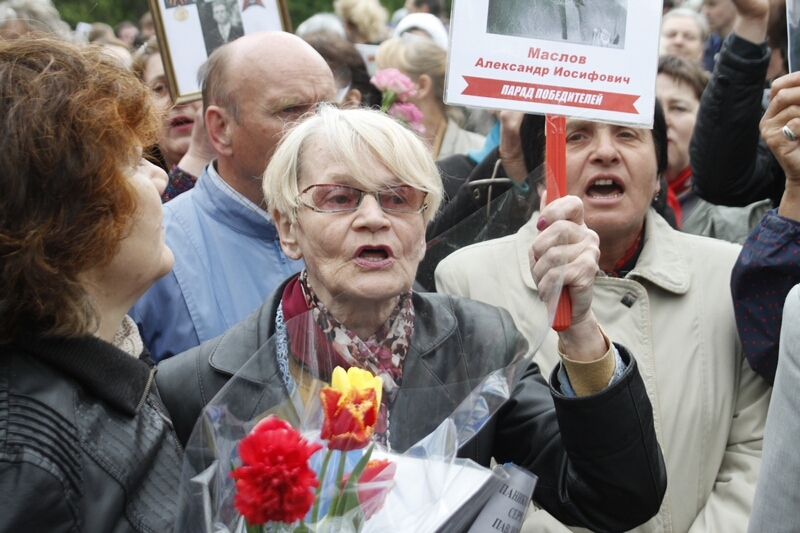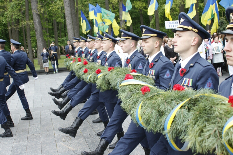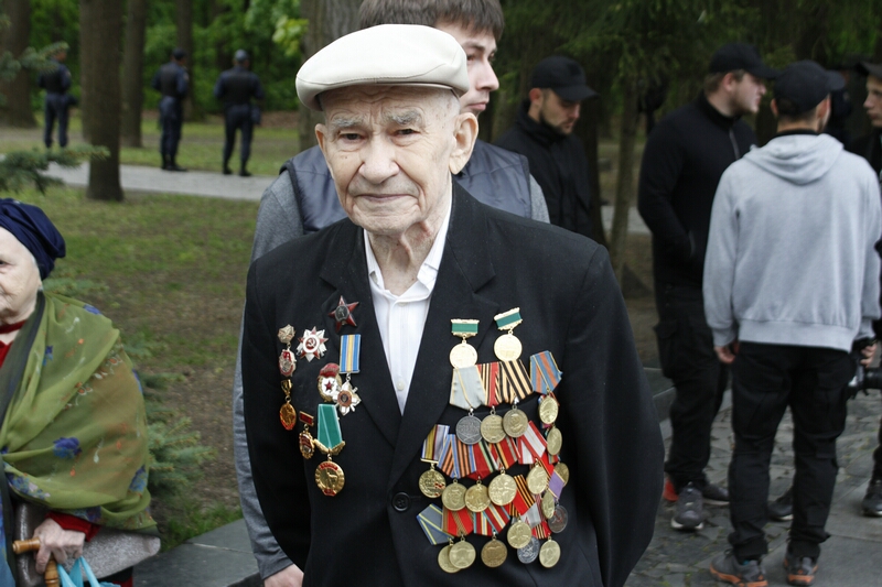 В толпе, устремившейся возлагать цветы, над головами «гордо реяли» портреты с георгиевскими ленточками и надписями «Бессмертный полк». Как туда затесались портреты героев погибших во время проведения АТО — остается загадкой. Но ветераны современной войны, которые принесли портреты своих побратимов, очень скоро вышли из пропитанной коммунистическими идеями толпы и стали в стороне от памятника.