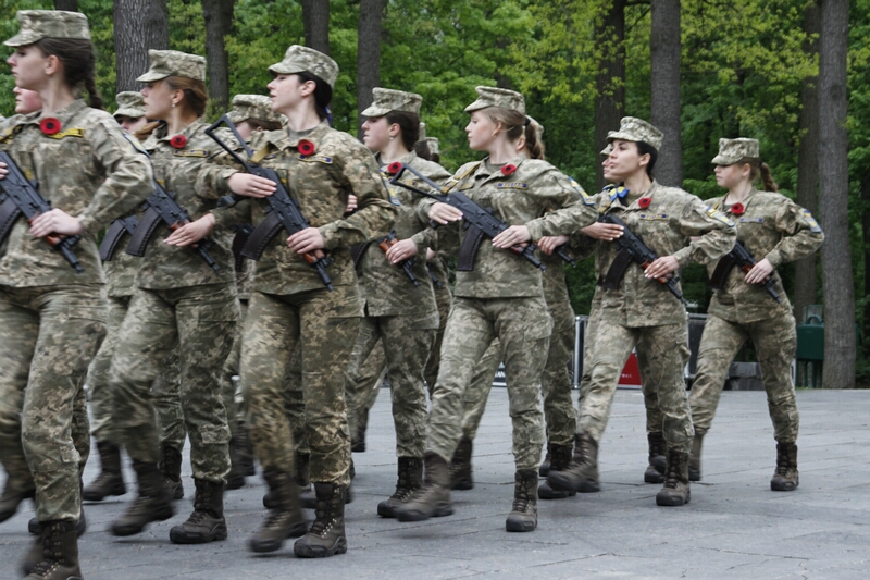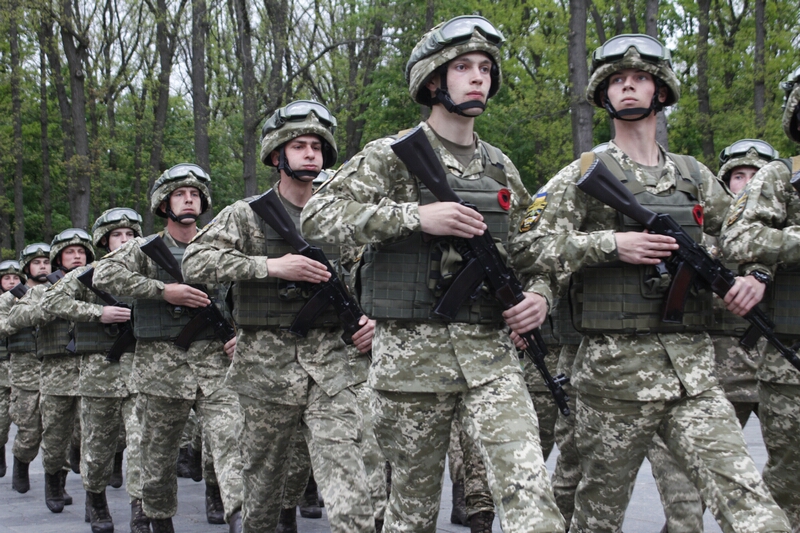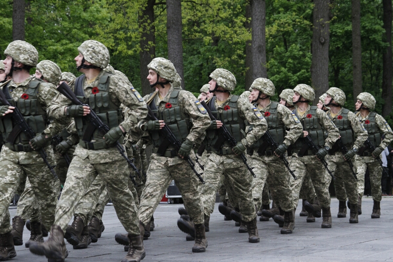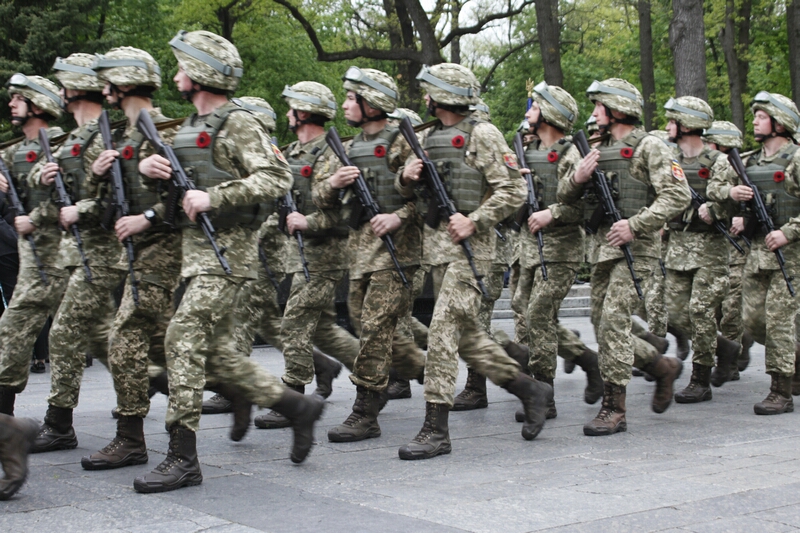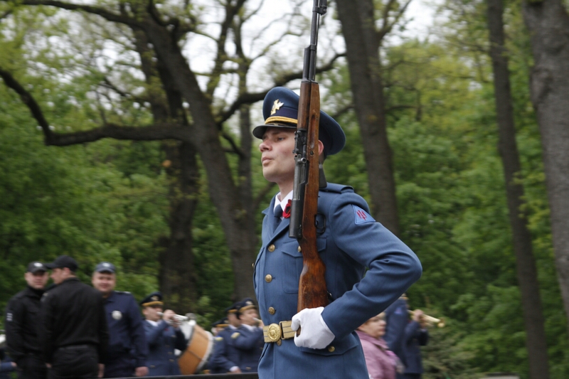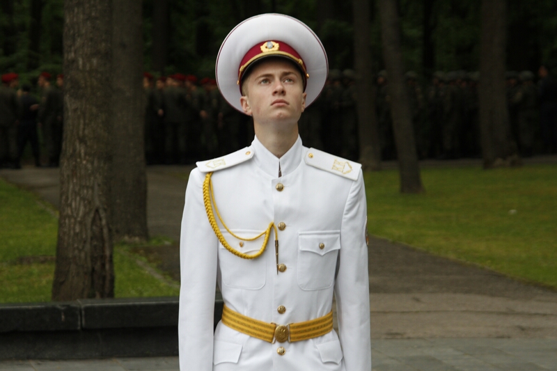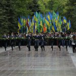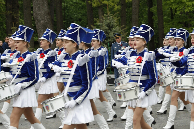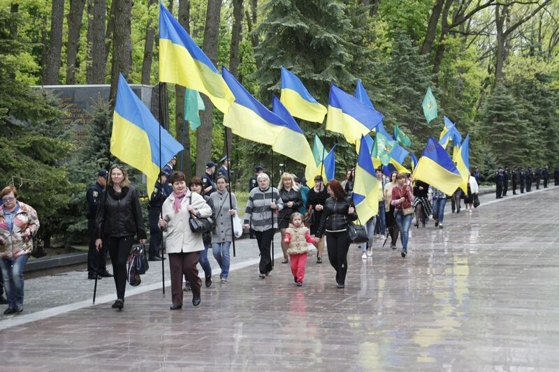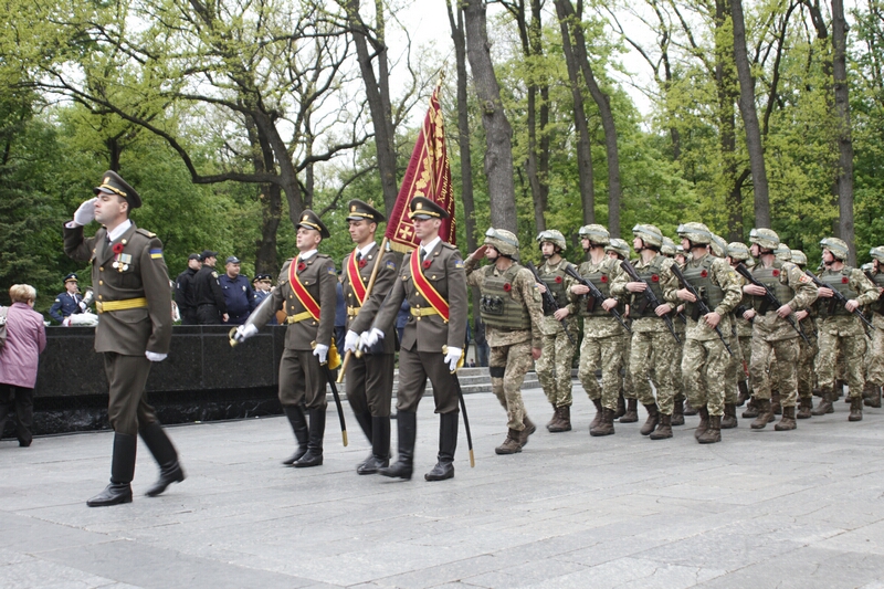 Господа из горисполкома, примкнувшие к ним представители церкви, заняли слева от вечного огня позицию для просмотра парада. В прохождении церемониальным маршем мимо памятника Родина-Мать приняли участие представители харьковских военных училищ, Национальной Гвардии и Университета МВД. После быстротечного, как горная река парада, к монументу допустили граждан.
