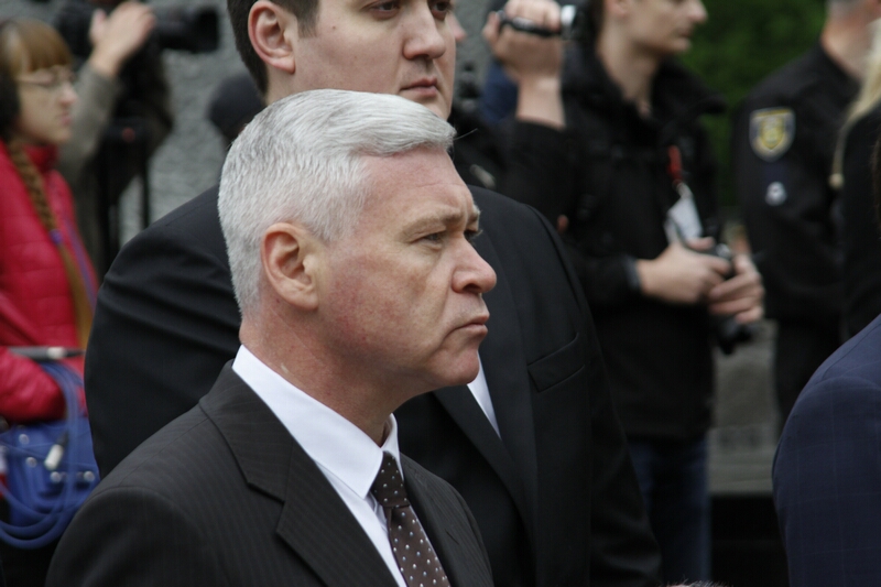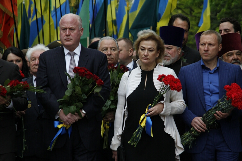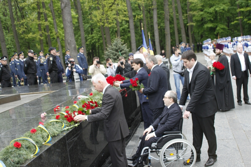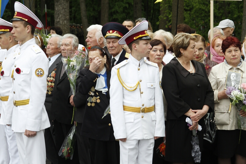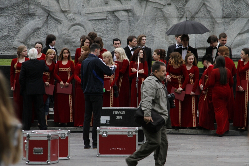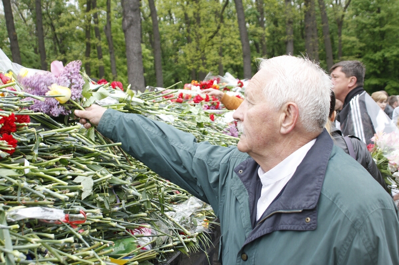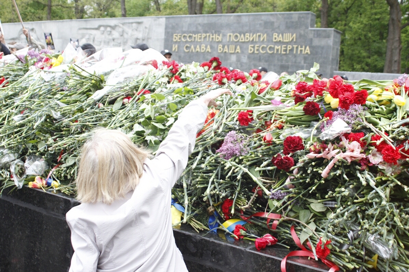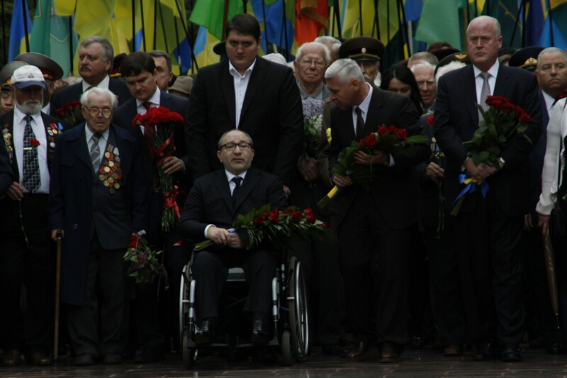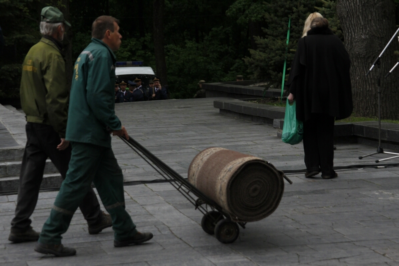 Перед памятником Родина-Мать проходила последняя подготовка к небольшому параду и торжественной церемонии возложения цветов, а у входа в мемориальный комплекс собравшиеся ветераны, их дети и внуки ждали мэра Харькова Г. Кернеса и его приближенных. Ровно в половине девятого прибывшие вместе с «главарем» мэрии, ее сотрудники торжественным маршем, оттеснив ветеранов, пропустив впереди себя только хвойную гирлянду, медленно и печально двинулись к монументу.